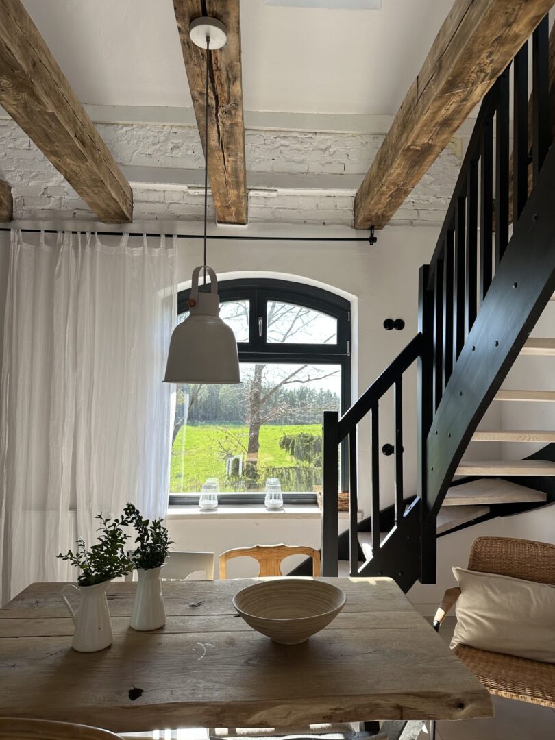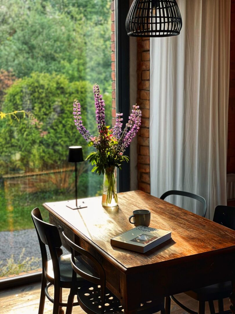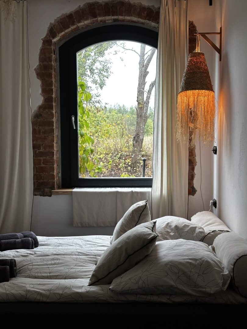 To dwa drewniano-murowane domki dla 4 os. o pow. 42 m2: Szary i Biały, z dostępem do jeziora (300 m) z wielkimi tarasami pośród łąk. Z panoramicznych okien widać tylko naturę, morenowe wzgórza, las i wschody słońca o poranku. W każdym kominek na chłodne dni.